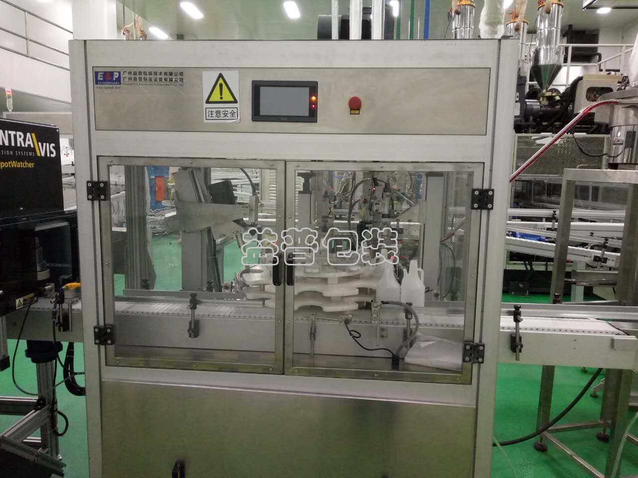 生產過程中,瓶子先從進瓶工位進入,通過尋位工位確保壺嘴朝外,然后進入放蓋工位,放蓋子以后,經過矯正工位調整小壺嘴位置,同時通過電眼檢測確認是否完成放蓋,最后進入旋蓋工位,最后通過星輪傳送,瓶子離開旋蓋機。