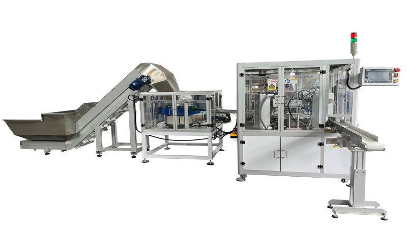 該系統由瓶蓋料倉,理料系統,主機組合蓋組成。該機型主要為自立袋食品包裝的吸嘴蓋實...